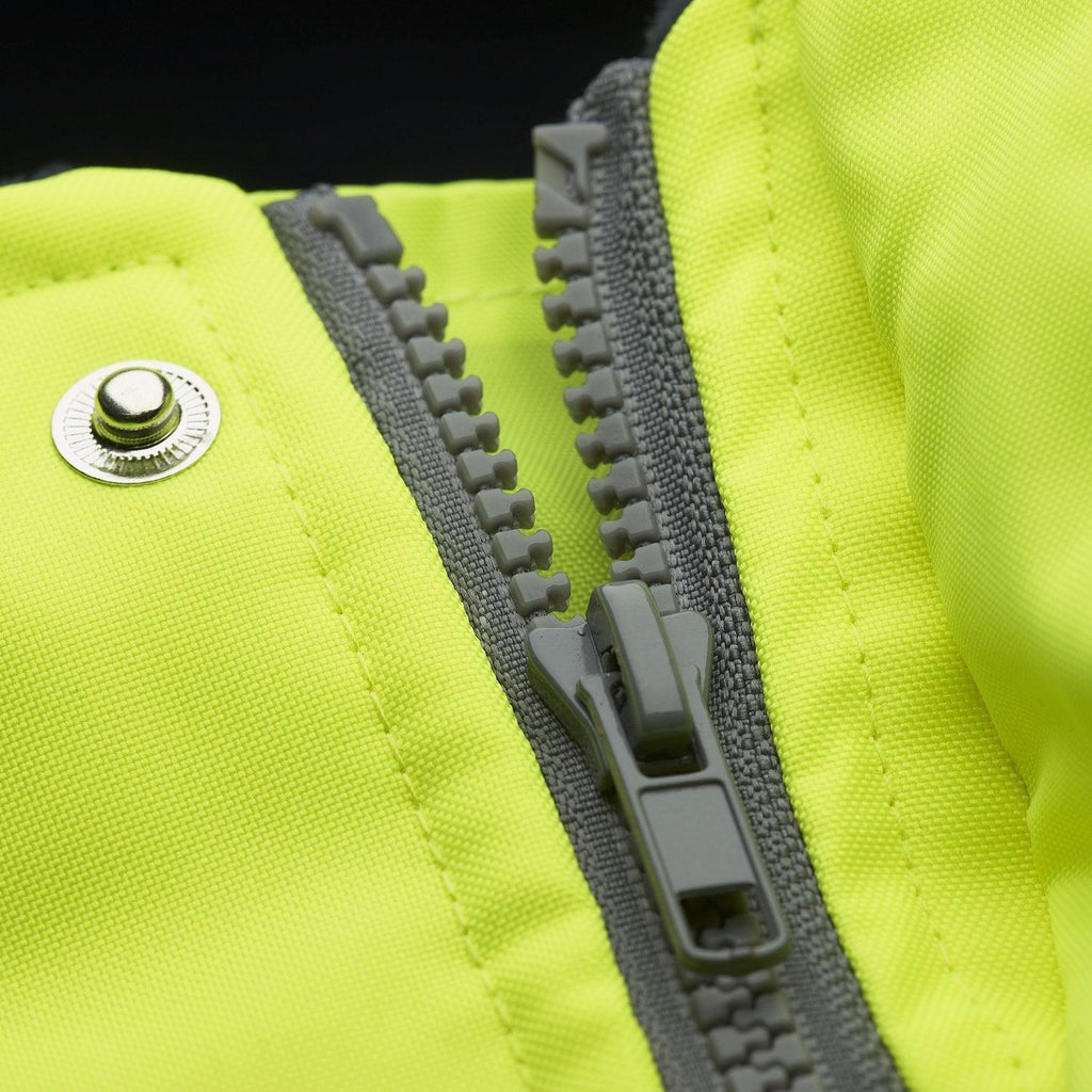 Mød vores Rhino! VELTUFF® hi-vis Rhino vandtæt jakke er en absolut nødvendighed for alle med arbejde udendørs under våde vejrforhold. Med certificering af høj synlighed i klasse 3 og Rail Industry Standard-certificering for den orange farve. Rhino er også certificeret til EN343 vandtætte standarder og har en skjult& justerbar hætte og en stormflap med knaplukning, der beskytter lynlåsen foran. Varmende polstring og fleece indvendigt i kraven for ekstra komfort. Enestående vare af høj kvalitet.