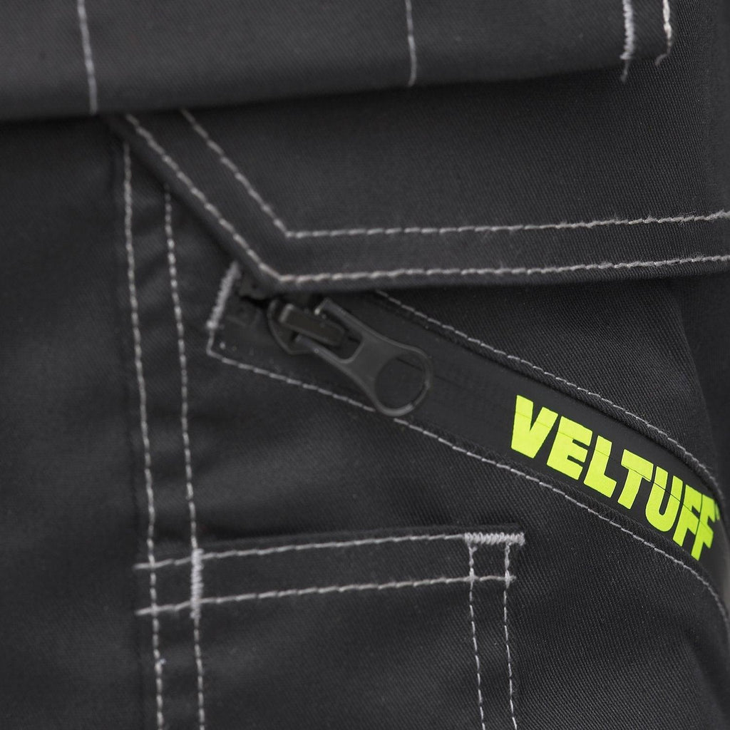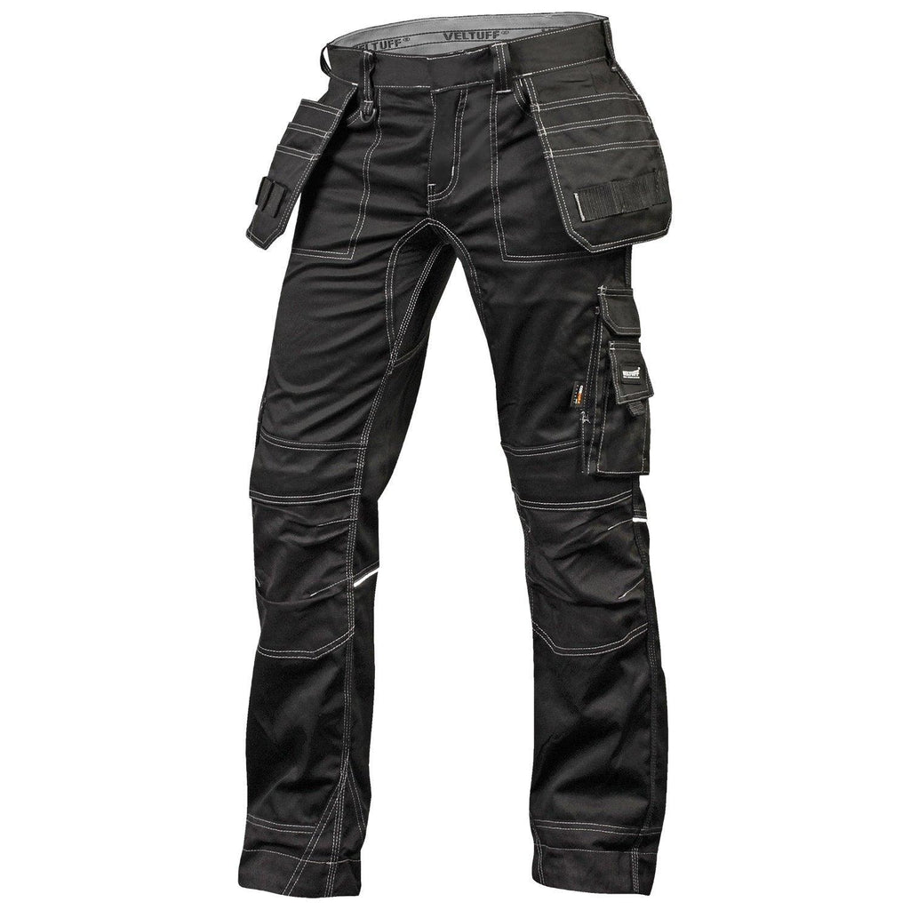 VELTUFF® Teamline strækbukser med hylsterlommer er et kvalitetsprodukt til professionelle håndværkere. Øverst har disse kraftige arbejdsbukser store bæltestropper, en D-ring foran og en gripper i taljen, der forhindrer bukserne i at glide ned, når man bøjer sig eller ligger på knæ. En absolut rigdom af lommer, der inkluderer hylsterlommer, baglommer, cargolommer& værktøjslommer. Og så har vi også superkraftige CORDURA®-lommer til knæpuder øverst. Vi har brugt dobbeltsøm hele vejen igennem som standard til bukserne og derefter tilføjet tredobbelt syning på tværs af alle vigtige belastningsområder for at øge holdbarheden. Endelig har disse bukser indbygget strækmateriale. Dette giver dig mulighed for at bevæge dig let og ubesværet uden at belaste og rive hul i bukserne, især nyttige til bøjninger, vrid og aktiviteter på knæ.