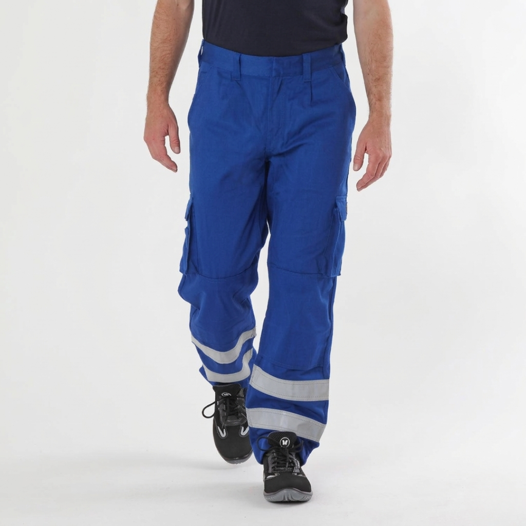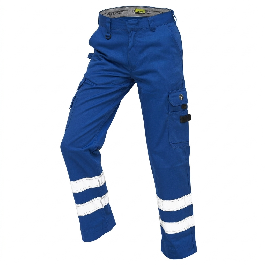 VELTUFF® Teamline reflexbyxor är slitstarka arbetarbyxor i polycotton, med två stora reflexband på smalbenen. Byxorna har knäfickor med öppning i nedåt för att sätta in knäskydd för mark- och knästående jobb och har även cargofickor på båda benen, höftfickor och två bakfickor. Vi använder dubbla sömmar som standard, men ökar till trippelsömmar på viktiga slitpunkter för att göra dem ännu starkare och har också ett midjeband med grepp som hjälper byxorna att stanna kvar i midjan och inte hasa ner när du går ner på knä eller & böjer dig framåt.